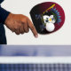 Cette palette drôle de ping-pong a un pingouin d'une chevelure bleu là-dessus tenant une batte. Ce fait partie d'un ensemble assorti de palettes et de boules ; avec de la balle de tennis d'une chevelure rouge de palette de pingouin et de table d'anarchie à assortir. Elle est l'une d'un certain nombre de raquettes et de boules de ping-pong d'amusement que vous pouvez acheter de Superkalifragilistic.