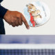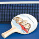 Cette pagaie de ping-pong illustre un mignon chiot et ses parents, un chauve et une brune. Vous pouvez customiser le texte.