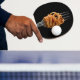 Raquette De Ping Pong Pâtes filées sur une fourchette, spaghetti de nour
