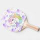 Une belle raquette de ping pong avec dessin de licorne avec des coeurs violet et rose.