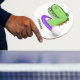 Cette palette de ping-pong a une illustration de sauter principal de T-Rex de bande dessinée mignonne hors d'un anneau pourpre. Vous pouvez la personnaliser en mettant votre nom là-dessus utilisant le modèle. C'est une conception d'amusement appropriée à tous.