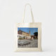Ein schöner Blick auf den Rasnov Marktplatz in Siebenbürgen in Rumänien auf einer Souvenirtasche gedruckt.