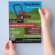 Rote Rasenmäher-Szene, Lawn Care Services Werbe-Flyer vom Business Card Store.