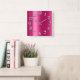 Raspberry Pink Metallic Minimal Silver Fuchsia Quadratische Wanduhr