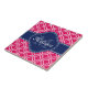 Himbeerrosa weißes marokkanisches Gittermuster mit einem Monogramm der Marine. Zusätzlich zum hellrosa und weißen Trellis-Muster befindet sich ein marineblau-weißes Etikett mit einem Monogramm Buchstaben und Namensvorlage, die Sie anpassen können.