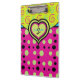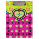 Personalize this fbright bold patterned clipboard in raspberry pink and lime dots and swirls with your name and monogram. Text is formatted and all ready for you edit in the easy Zazzle editor. See coordinating notebook also available. Created in part with graphics from resaleclipart.com, and playtimeworld.com and Trina Clark of DigiscrapKits at www.digiscrapkits.com