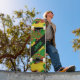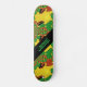 Rasta-farbenes Dd-Skateboard in abstraktem Design, mit einem schwarzen diagonalen Text Streifen. Personalisieren Sie den grünen Text nach Anzug Ihrer Bedürfnisse.