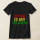 Das Material ist eigentlich gute Qualität, der Stoff ist nur etwas verzogen so dass der Drück leicht schief aussieht. Der Druck ist gute Qualität, habe das T-Shirt schon einige male gewaschen.
