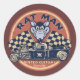 Imitate Retro-Vintages Auto-Shop-Logo: "Rat Man - Rusted Customs - national!" Mit grinsendem Rattenkopf, karierter Fahne und einer Rattenzange-Aufnahme auf einem runden Hintergrund. T - Shirt, Hunde, Karten, Geschenke.