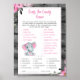 Niedliche Baby Girl Elephant Pink Blume Raten Sie das Candy Baby Shower Game mit Holzhintergrund personalisierbaren Text - digitale oder gedruckte Babyduschkarte.