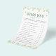 Das "Guess Who Mommy or Daddy Dinosaur Game Baby Shower Game" ist eine angenehme und einnehmende Aktivität, die für geschlechtsneutrale Babyduschen konzipiert ist und eine unterhaltsame Atmosphäre schafft, wie die Gäste erraten, wer was zwischen den werdenden Eltern gesagt oder getan hat. Dieses interaktive Spiel beinhaltet das Lesen von Aussagen über Schwangerschaft, Elternschaft und persönliche Vorlieben, wobei die Gäste entscheiden, ob jede Aussage mehr auf "Mami" oder "Daddy" zutrifft. Es ist ein fantastischer Weg, alle an der Feier zu beteiligen, Lachen zu teilen und mehr über die zukünftigen Eltern zu erfahren. Die Teilnehmer wählen dann ihre Antworten aus, was oft zu amüsanten Debatten und gemeinsamen Geschichten führt. Dieses Spiel ist nicht nur ein großartiger Eisbrecher, sondern auch ein herzlicher Weg, die Reise der künftigen Eltern zu unterstreichen, was es zu einem unvergesslichen Teil jeder Babydusche macht. Das Set ist einfach, inklusive für alle Familien und sorgt für ein leichtes und freundliches Erlebnis für Gäste und Gastgeber gleichermaßen. Kontaktieren Sie Designer für passende Produkte. Sammlung hier sehen: https://www.zazzle.com/collections/119796399124314878 Copyright Anastasia Surridge, alle Rechte vorbehalten.