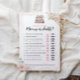 Machen Sie Ihr Baby Dusche Spaß und interaktiv mit diesem Guess Who? Mama oder Daddy Game! Die Gäste werden Liebe haben, zu erraten, welcher Elternteil eher etwas für sich tun wird, wer die besten Lullabies singen wird, oder wer sich während der Schwangerschaft am meisten nach Süßigkeiten sehnt! Dieses unterhaltsame Spiel bringt Lachen und Freude bei der Feier der künftigen Eltern.