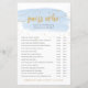 Ratet mal Wer blaue Wasserfarbe und goldenes Baby Duschspiel. Sie können dieses Spiel mit dem Ehrengast und dem Duschdatum sowie 15 Aussagen/Fragen personalisieren. Ihre Baby Duschgäste werden erraten, wer jede Aussage gesagt hat...Mama oder Papa.