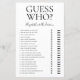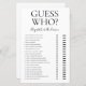 Dieses schöne, moderne Guess Who - Brautparty-Spielblatt ist perfekt für jede Dusche. Dieses lustige und leichte Spiel bringt jedem Brautparty viel Lachen. Einfach jedem Gast ein Blatt geben (vergessen Sie nicht die Stifte) und den Spaß gelassen beginnen! Sie werden erstaunt sein, wie viele Dinge die Leute über Braut und Bräutigam wissen. Um dieses Spiel zu Ihrem eigenen zu machen, wählen Sie einfach diese Vorlage personalisieren und geben Sie den Namen der Braut und den Namen des Bräutigams ein.