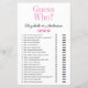 Dieses schöne Brautparty ist perfekt für jede Dusche. Diese lustigen und leichten Spiele bringen sicher viel Lachen in Ihr Brautparty. Einfach jedem Gast ein Blatt geben (vergessen Sie nicht die Stifte) und den Spaß gelassen beginnen! Sie werden erstaunt sein, wie Ihre Gäste beginnen sich zu vermischen und sich kennenzulernen und wie viele Dinge die Leute über Braut und Bräutigam wissen. Um dieses Spiel zu Ihrem eigenen zu machen, wählen Sie einfach diese Vorlage personalisieren und geben Sie den Namen der Braut und den Namen des Bräutigams ein.