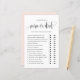 Raten Sie mal, wer? Mama oder Papa? Fügen Sie dieses lustige und spielerische Spiel Ihrer Babydusche hinzu. Es enthält ein schwarzes whimsical Skript, klassische Typografie, rot-rosa Hintergrund. Sie können die Rückseite dieser Baby Duschspielkarte personalisieren. Diese Gästekarte eignet sich perfekt für jedes Babyduschthema und jede Saison.