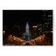 Das ist das Rathaus in Philadelphia, Pennsylvania. Das Foto wurde nach Südosten auf dem Benjamin Franklin Parkway genommen. Der Ben Franklin Parkway führt vom Philadelphia Museum of Art an einem Ende zum Liebe Park und zum Rathaus am anderen Ende und ist von den Flaggen vieler Länder aus aller Welt gesäumt. Das Rathaus von Philadelphia ist ein Juwel der Stadtarchitektur, und das Gebäude sieht abends schön hell aus. Es ist mit einer Statue von William Penn überragt, und bis Mitte der achtziger Jahre war es das höchste Gebäude in Philly. Das Rathaus befindet sich im Zentrum von Philadelphia, auch als Innenstadt bekannt.