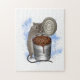 Funny Cartoon Ratte mit einer offenen Dose gebackener Bohnen.