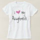Liebe I mein Raubein für eine Freundin oder eine Ehefrau auf einem weißen Shirt mit einem Herzen des heißen Rosas für die Dame des Ölfeldmannes s