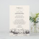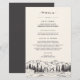 Unser rustikales, schicke Hochzeitsmenü oder ein besonderes Veranstaltungsmenü umfasst Vorspeisen, Vorspeisen und Desserts, die mit einer skizzierten Darstellung von Berggipfeln, Kiefern und einem fließenden Fluss versehen sind, mit "Menü" oben in eleganter Kalligraphie-Schrift. Koordiniert mit unserer Hochzeitskollektion "Mountain Sketch".