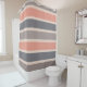 Dieser stilvolle Duschvorhang kennzeichnet modische Streifen in Dunklem und in hellgrauem, in korallenrotem und Beige. Eine große Weise, Farbe einem neutralen Badezimmer hinzuzufügen!