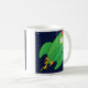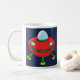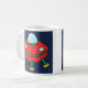 Tasse mit zwei Cartoonillustrationen, eine eines Raketenschiffs und eine eines Fliegen Saucer