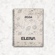 Niedliches und cooles Weltraum- und Universum-Themenmuster mit Galaxien, Sternen, Mond, Planeten, Erde, Astronaut, Raumschiff, Alien, Raketenschiff, Nebel. Doodle-Elemente in dunkler Kohle auf beigem Hintergrund