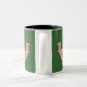Der Volkskunst-Hahn auf dieser Tasse ist im Stil der Art geschnitten mit einer Scrollsäge aus einem Holzbrett, aber mit einer trendigen Drehung. Das Huhn hat die typische rote Rinde und den Kamm, aber sein Körper ist mit einer Raute in verschiedenen Beige- und Brauntönen gefüllt. Der anpassbare Text kann leicht geändert werden, um zu sagen, was Sie wollen. Aus meinem digital erstellten Original-Bild.