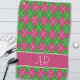Raute Kariert rosafarbene Monogramm-Initialen Golfhandtuch