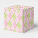 Vielen Dank an Ihre Mitarbeiter oder Kunden mit einer besonderen Geschenk- oder Leckerei-Geschenkboxen. Ideal für Firmengeschenke für Kunden oder Mitarbeiter an Golftagen. Kann auch für Golf-Gastgeschenke Hochzeiten oder Firmengolfveranstaltungen mit Süßigkeiten oder Geschenken verwendet werden. Eine Raute-Golf-Muster gestylte Geschenkboxen in Rosa, Grün und Weiß. Perfekte Größe für ein Golfballgeschenk! Entworfen von Sarah Trett.