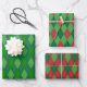 Ein Set aus Papiervordach, das mit einer Raute in Weihnachtsfarben, dunkelrot und verschiedenen Grüntönen gebaut wurde. Passen Sie die Mustergrößen unter anderen Optionen an.