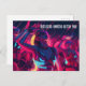 Lebhafte Vektorkunst einer schönen jungen Frau in einem Clubbekleidungsoutfit bei einem Sprungpause EDM Rave in der Innenstadt von Miami. Mit generativen Algorithmen und Fotoshop erstellt.
