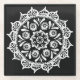 Dieses weiße Mandala sitzt auf einem schwarzen Hintergrund. Teil der Brosya Mandala Kollektion.