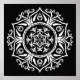 Dieses weiße Mandala sitzt auf einem schwarzen Hintergrund. Teil der Rosenn Mandala Kollektion.