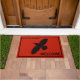 Eine einfache, schwarze Silhouette eines Raven (Corvus corax) auf einem roten Hintergrund. Das Rabe-Bild hat einen leichten "rauen" oder "abgenutzten" Effekt. Auch "WELCOME" wird angezeigt und es gibt einen zusätzlichen Platz, wo Sie Ihren eigenen Text hinzufügen können.