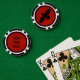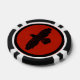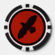 Eine einfache, schwarze Silhouette eines Raven (Corvus corax) auf einem roten, lederfarbenen Hintergrund. Das Rabe-Bild hat einen leichten "rauen" oder "abgenutzten" Effekt. Fügen Sie auf der Rückseite Ihren eigenen Text hinzu.