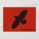 Eine einfache, schwarze Silhouette eines Raven (Corvus corax) auf einem roten, lederfarbenen Hintergrund. Das Rabe-Bild hat einen leichten "rauen" oder "abgenutzten" Effekt. Fügen Sie Ihren eigenen Text hinzu.