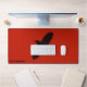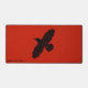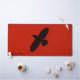 Eine einfache, schwarze Silhouette eines Raven (Corvus corax) auf einem roten Hintergrund. Das Rabe-Bild hat einen leichten "rauen" oder "abgenutzten" Effekt. Fügen Sie Ihren eigenen Text hinzu.