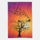 Oiseau noir dans un arbre. Les serviettes de cuisine du Ravens. Black Bird Ravens perché dans un arbre et s'envolant avec un arrière - plan couché de soleil. L'animal totémique de beaucoup. Corbeau noir contre un arrière - plan de coucher de soleil coloré. Réarrangez les graphiques, jouez avec les couleurs, pour correspondre à votre goût. Une belle photo d'oiseaux pour ceux qui aiment les corbeaux, les corbeaux, les oiseaux noirs. Inspiré par — Edgar Allan Poe, The Raven