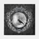 Ein Rabe unter Vollmond auf verziertem Damast-Hintergrund.