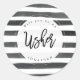 Un autocollant rayé noir et blanc avec texte modifiable et typographie "usher". Facile à modifier ou à supprimer les champs de texte disponibles pour répondre à vos besoins personnels. S'il vous plaît visitez mon magasin pour trouver les articles correspondants dans cette collection comme les cartes de proposition, merci etc.