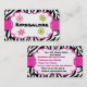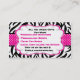 C'est un carte de visite adorable. Il a les rayures noires et blanches de zèbre avec un ruban de point de polka de roses indien venant par le centre de la carte. Il y a un centre bouillonné blanc avec quatre petites fleurs dans les coins du centre blanc. Vérifiez les nombreux autres produits avec cette conception.