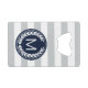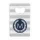 Motif rayé large gris et blanc moderne avec le monogramme fait sur commande de logo de guirlande de laurier dans le bleu marine pour ajouter votre propre initial, nommé ou le texte - ouvreurs de bouteille personnalisés de carte de crédit.