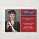 Un faire-part rouge et bleu moderne d'obtention du diplôme qui est conçu pour incorporer une photographie de la personne qui reçoit un diplôme.