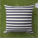 Ce grand oreiller extérieur est montré dans un joli imprimé bleu marine et blanc rayé. Customisez cet objet ou achetez-le tel quel.