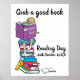 Reading day reading on a stack of books event poster