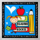 Une figurine blonde à cheveux, une pile de livres, une pomme rouge, un crayon jaune, une bordure d'alphabet et un texte qui dit "Reading Rocks!" sur une affiche amusante et colorée parfaite pour les classes scolaires, les bibliothèques, les chambres pour enfants, ou n'importe où vous voulez l'afficher ! Cette affiche Reading Rocks est une excellente façon de promouvoir la lecture chez les enfants!