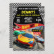 Ein spannendes Rennwagendesign mit kühnen Farben, schnellen Sportwagen und karierten Flaggen. Ideal für ein hochenergetisches Kindergeburtstag voller Spaß, Action und Rennvibes.