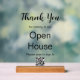 Vielen Dank, dass Sie zu unserem Open House gekommen sind. Bitte scannen, um sich anzumelden. Dies sind die Wörter, die derzeit über dem QR-Codebild angezeigt werden. Sie können den schwarzen Bildschirmtext bearbeiten, um eine benutzerdefinierte Meldung anzuzeigen, falls gewünscht. Die oberste Zeile ist ein elegantes Skript, das Dankeschön sagt. Die Erholung des Textes ist kein Skript. Ein QR-Code befindet sich ganz unten, damit Ihre Gäste sich einscannen können. Denken Sie daran, Ihre Website einzugeben, damit der QR-Code korrekt funktioniert.