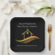 Diese schicke Papiertafel aus echtem Anwesen wird nach Ihren Wünschen mit Ihrem Immobilienunternehmen und Agent-Namen gefertigt. Dieses elegante, in schwarz-goldfarbene, offene Hausdekor besticht durch ein hübsches Haus mit einem überdachten und schlichten Gewölbe. Personalisieren Sie dieses Business Marketing Design mit Ihren eigenen Informationen. Behalt das Design oder ersetze es durch ein eigenes Logo.
